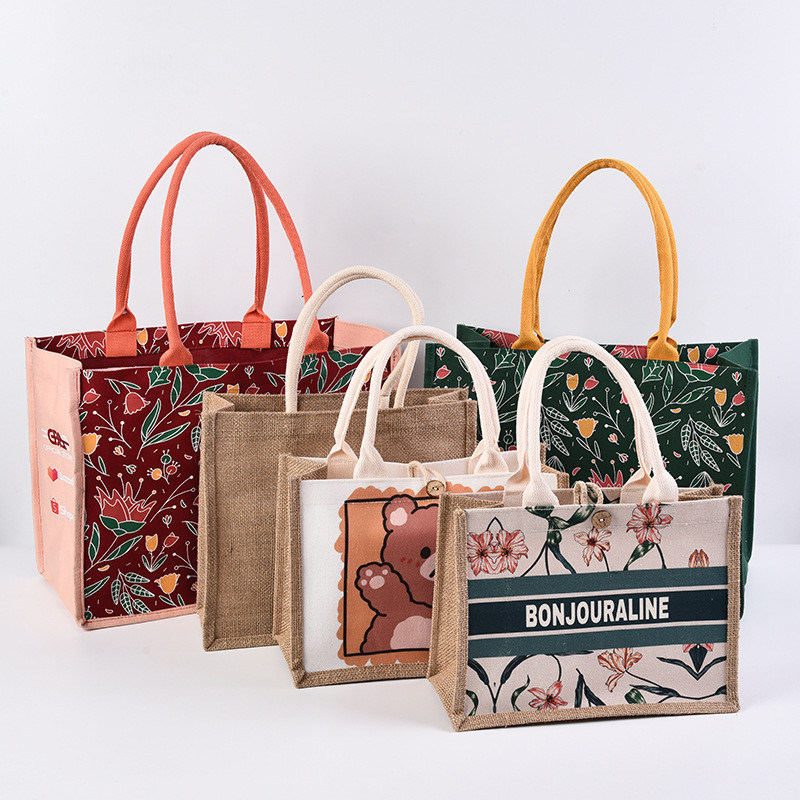Natural jute tote bags are very suitable for flower arrangements, crafts, custom DIY, gifts, birthdays, gifts, and advertising for your business.