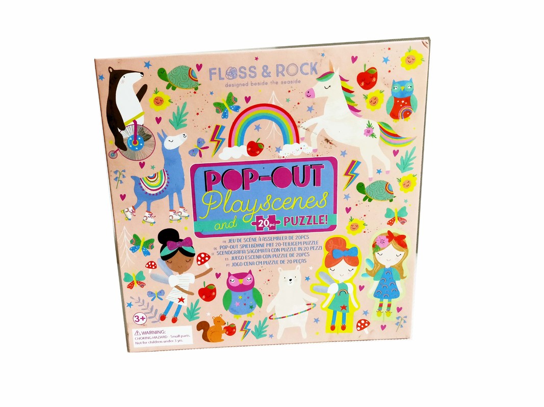 Our rainbow fairy pop out play scene is so much fun! Push out the characters and assemble on their stands. Make the 20 piece puzzle. Fold out the box and your rainbow fairy garden is ready for lots of imaginary play!